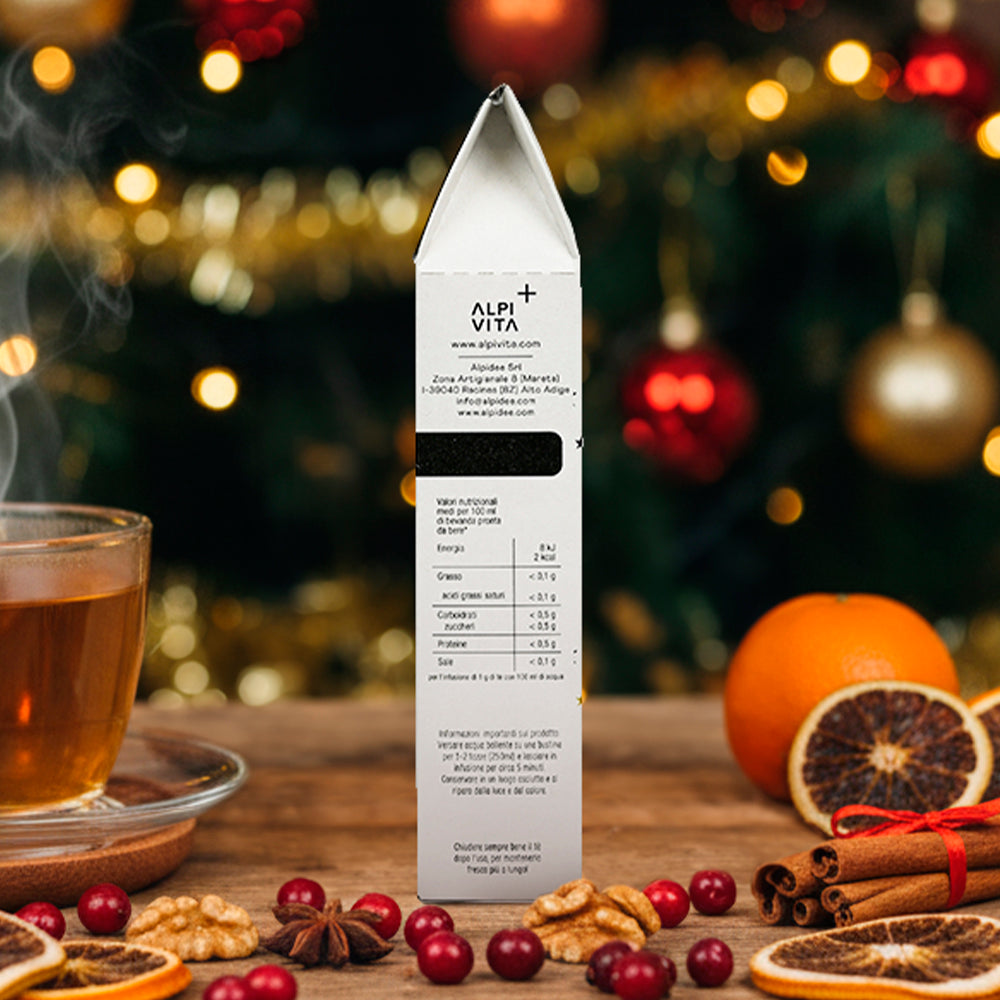 Ingredienti: pezzetti di mela, ibisco, cannella, rosa canina, acini d’uva, coriandolo, ori di girasole, aromi naturali.